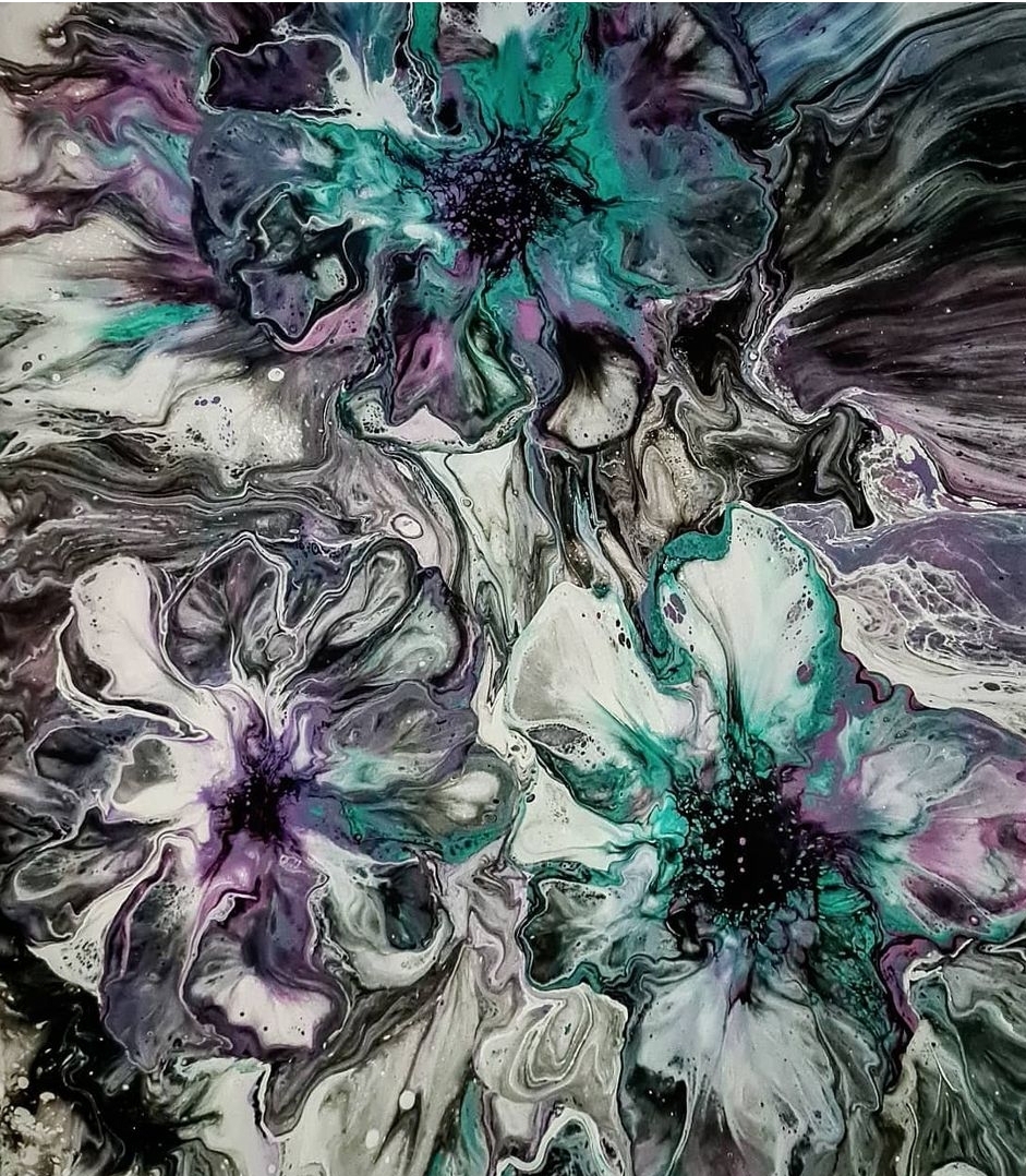 Acrylic dutch pour on canvas. Finished with resin glass.